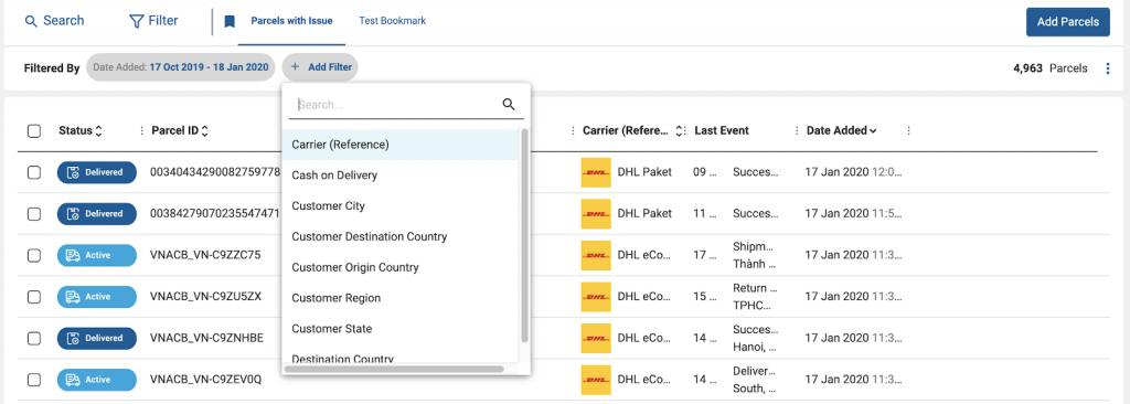 That's not all, we also now have over 20 filter options to the Parcel Overview - giving you even more options and dimensions to filter your displayed parcel data. It’s also easier to add filters or view the filters that have already been applied to your Parcel Overview selection.