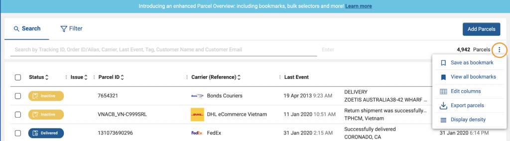 Developing personalised customer experiences is a key focus in 2020 and we’re happy to announce several enhancements to the Parcel Overview to help you do that. Save your Parcel Overview view as a bookmark, share them across your organization for quicker viewing.
