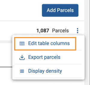 To complement this new Bookmark feature, we’re also adding many more options to display and filter data in the Parcel Overview. Add, remove or drag and drop columns to fit your individual working style.