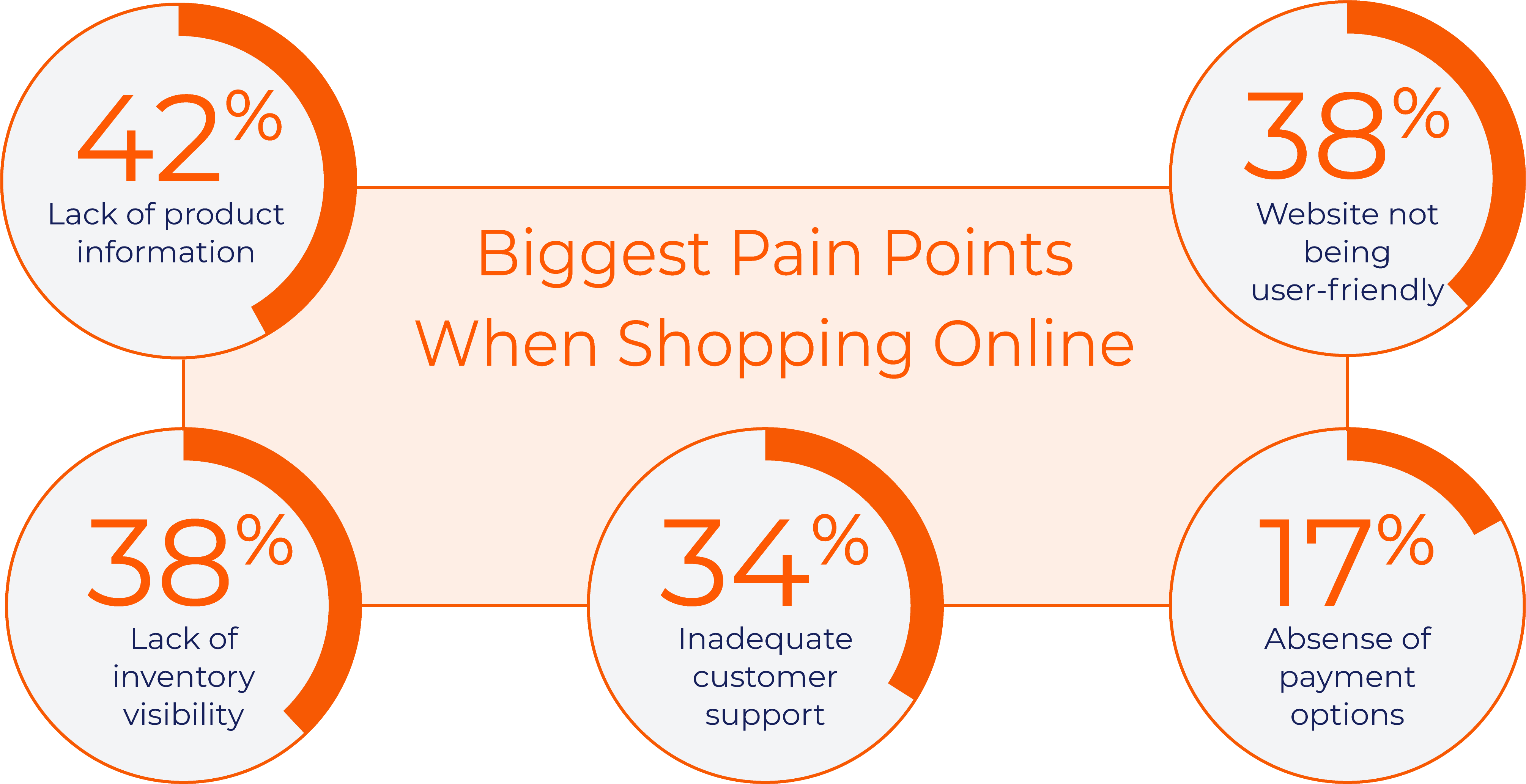 In recent surveys about online shipping, 42% of US consumers highlighted "lack of product information" as a source of frustration. Other notable pain points are: