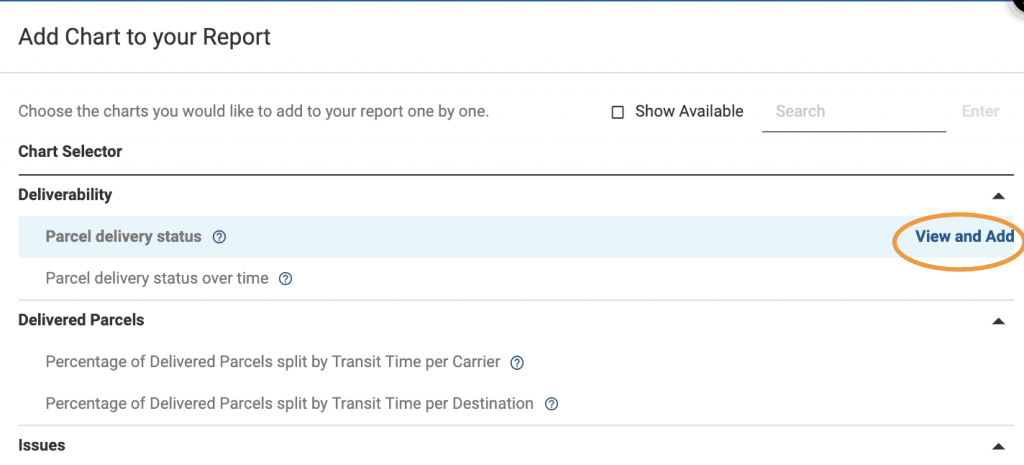 View and create your own reports, share customized reports across your organization account and see all Parcel Perform standard reports within the Logistics Intelligence Overview page.