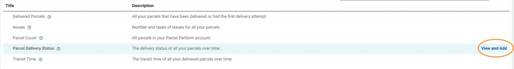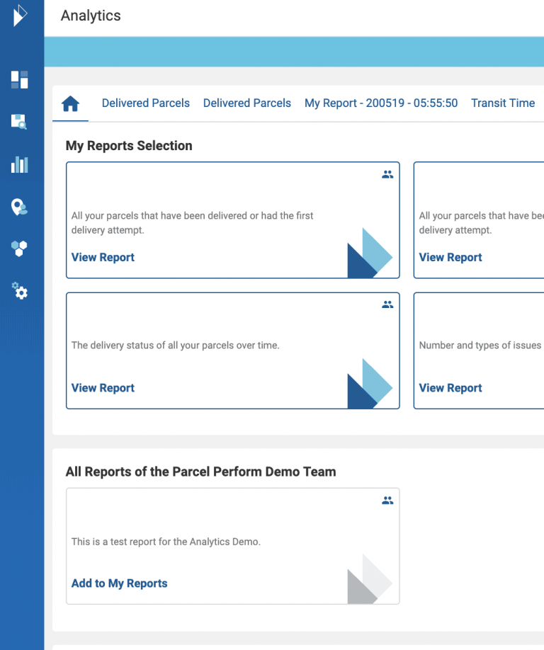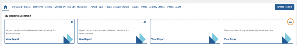 Shared reports within the organization or Parcel Perform standard reports that you’ve added to your reports