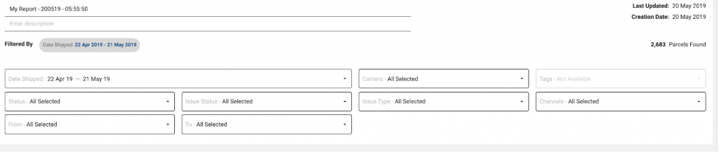 Want to modify and filter the data being displayed? Our powerful parcel filters first introduced in the Parcel Overview screen can also be used within the Logistics Intelligence feature.! These give you nearly unlimited potential for customization to your desired requirements.